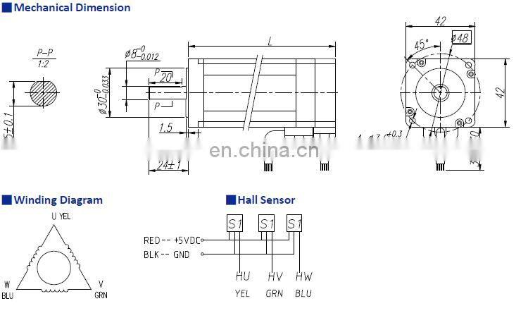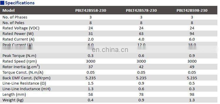 (NEMA 42). These 3-phase and 8-pole brushless motors are provided with hall signals for commutation and velocity