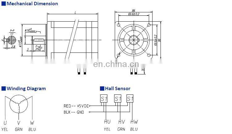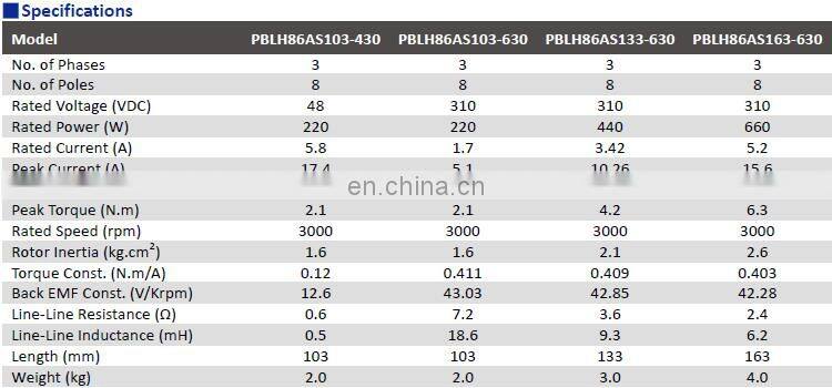 (NEMA 42). These 3-phase and 8-pole brushless motors are provided with hall signals for commutation and velocity