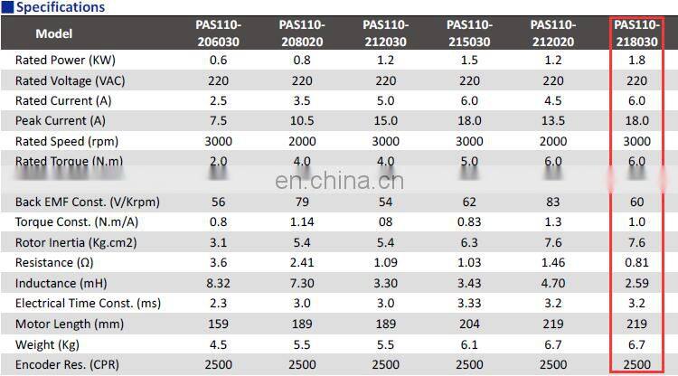 | Model Number | PAS110-218030 | Type | Servo Motor | |