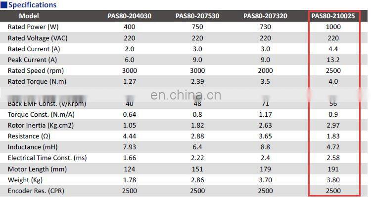 | Model Number | PAS80-210025 | Type | Servo Motor | |