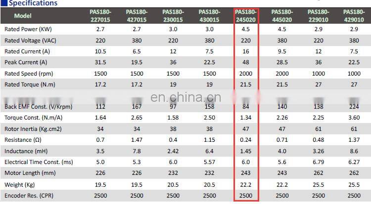 | Model Number | PAS180-245020 | Type | Servo Motor | |