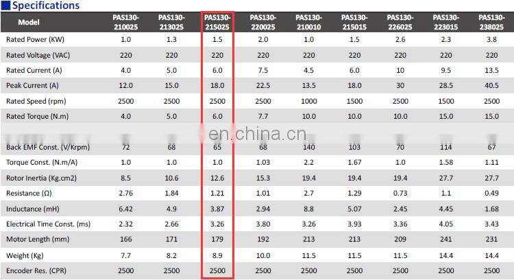 | Model Number | PAS130-215025 | Type | Servo Motor | |