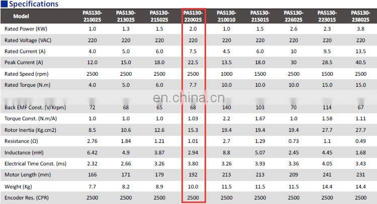 | Model Number | PAS130-220025 | Type | Servo Motor | |