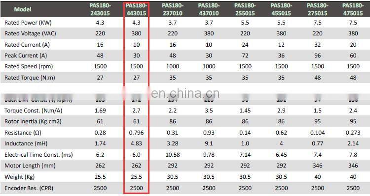 | Model Number | PAS180-443015 | Type | Servo Motor | |