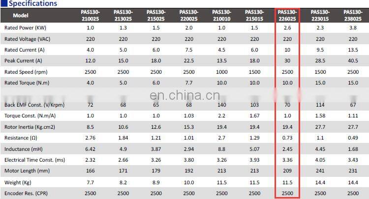 | Model Number | PAS130-226025 | Type | Servo Motor | |