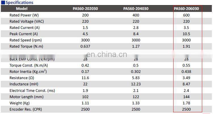 | Model Number | PAS60-206030/PATC100S-75 | Type | Servo Motor | |