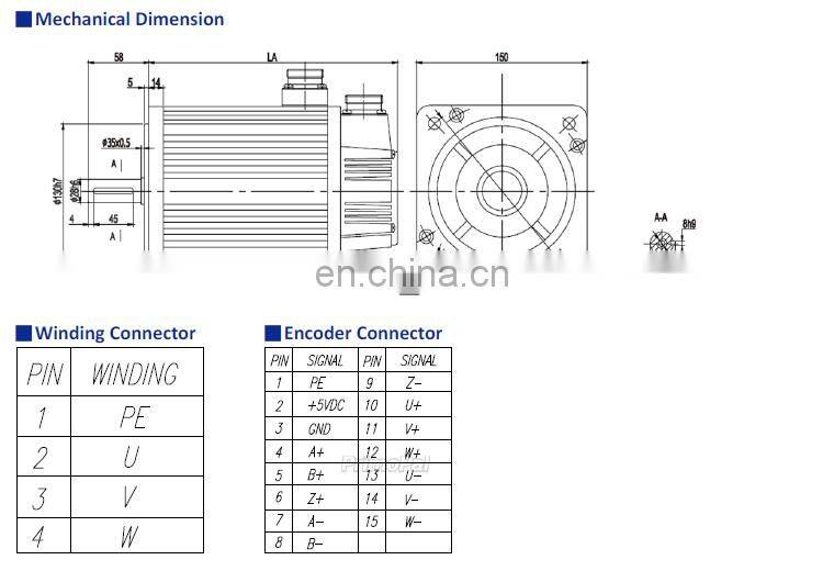1. AC servo motor, P/N PAS150-230020 (w/ brake or w/o brake)