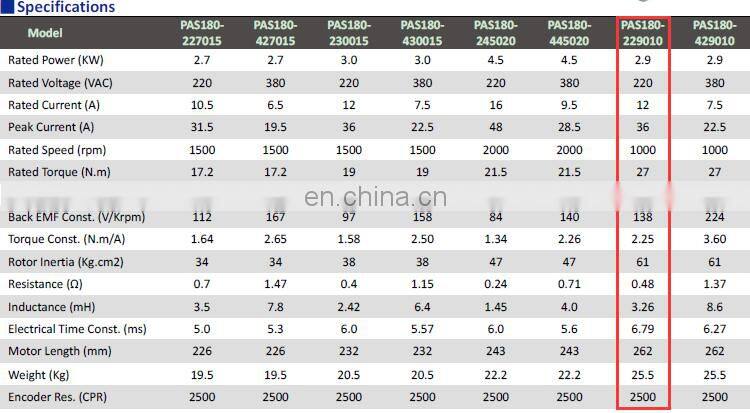 | Model Number | PAS180-229010/PATG50L | Type | Servo Motor | |