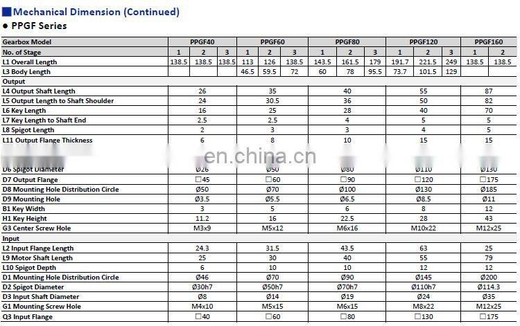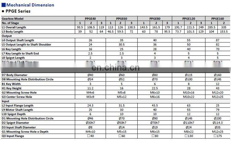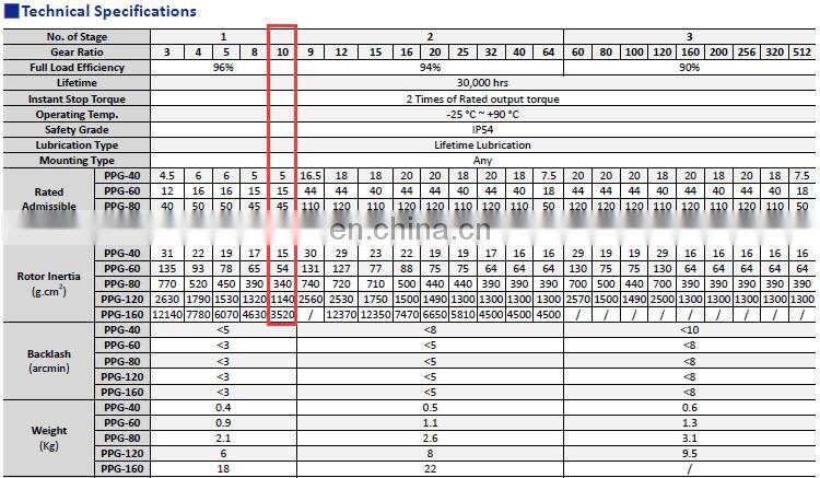 PrimoPal’s PPG series High Precision Planetary Gearboxes are mainly used with kinds of servo motors and brushless DC motors, etc. These straight-gear gearboxes are easy to be mounting, having highest efficiency of 98%, highest admissible torque of 1800N.m and the lowest backlash of 3arcmin. The reduction ratio comes in 23 different options, ranging from 1:3 to 1:512. Besides, high precision planetary gearboxes with helical gears are also available.