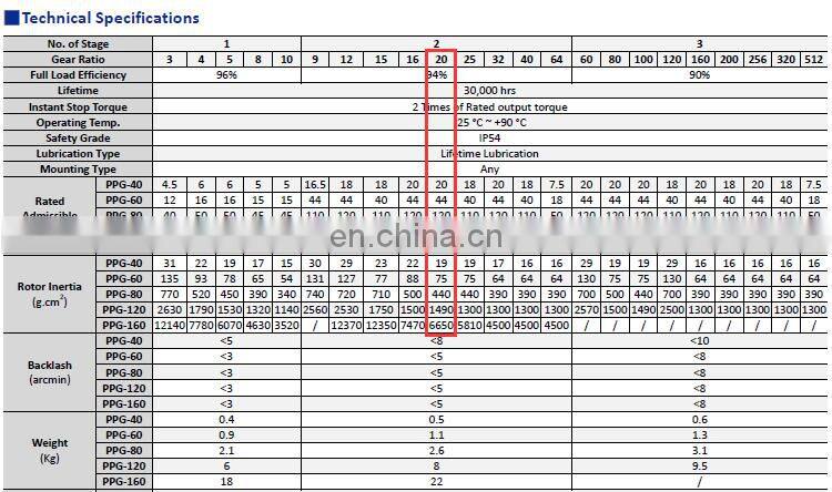 PrimoPal’s PPG series High Precision Planetary Gearboxes are mainly used with kinds of servo motors and brushless DC motors, etc. These straight-gear gearboxes are easy to be mounting, having highest efficiency of 98%, highest admissible torque of 1800N.m and the lowest backlash of 3arcmin. The reduction ratio comes in 23 different options, ranging from 1:3 to 1:512. Besides, high precision planetary gearboxes with helical gears are also available.