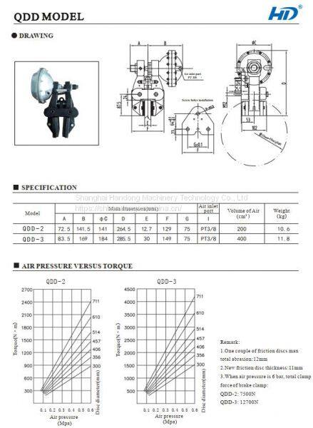 QDD model horizontal type pneumatic brake is large braking torque friction type brake. There are two models of it: QDD-2, QDD-3. They can produce high braking force after inputting air source.