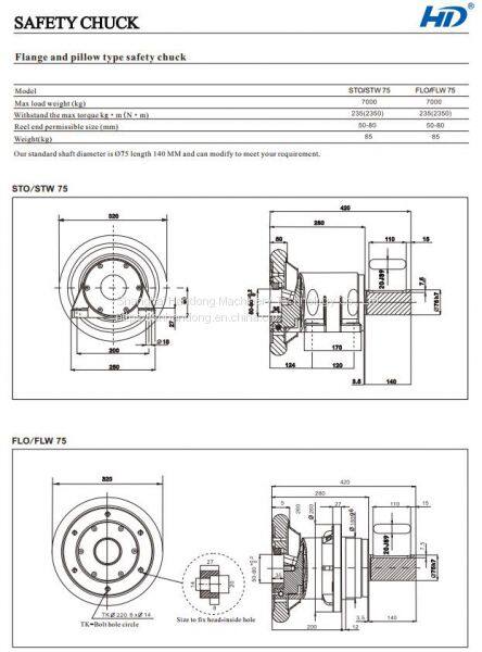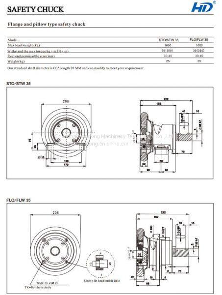 Seat mounted safety chuck is one type of safety chuck. For the standard reel holding mouth safety chuck, there are two types: FLO/W flange installation and STO/W foot seated safety chucks. They are both have four models: FLO/W28, FLO/W35, FLO/W50, FLO/W75 and STO/W28, STO/W35, STO/W50, STO/W75.