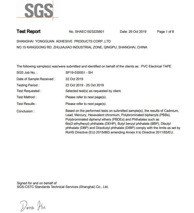 The high-quality PVC soft film as backing, coated with natural rubber, and the thickness is 0.18mm, achiving the professional certification - UL certification. The PVC electric insulation tape has below advantages: professional grade with high safety performance, good insulation, flame retardant and voltage resistance, strong viscous force, not easy to fall off, good peeling force and tensile strength. As a professional tape manufacture, all the size(width, length, thickness), color, packing, design and other requests can be customized. The delivery time is 20-25 days for a container.