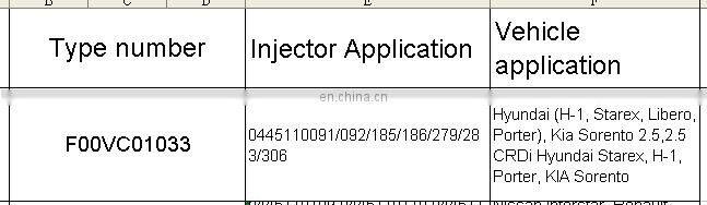 | Injector Application | 0445110091 0445110092 044511185 0445110186 0445110279 0445110283 0445110306 |