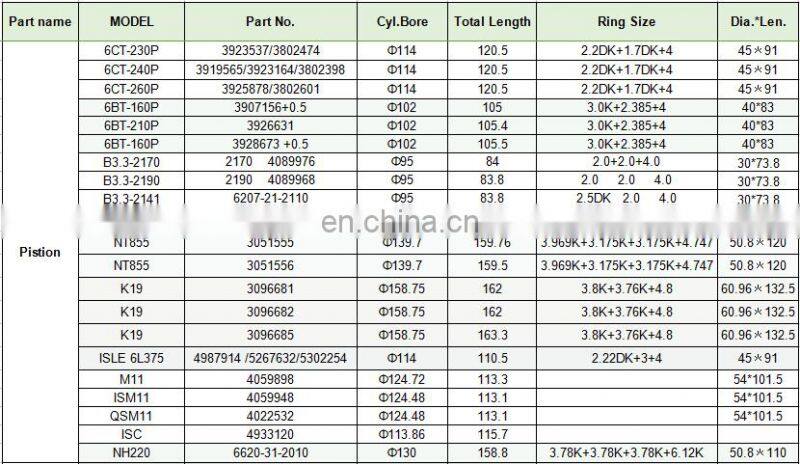 | Name | High Quality QSB4.5 Piston Machinery Engine Piston 3969000 |