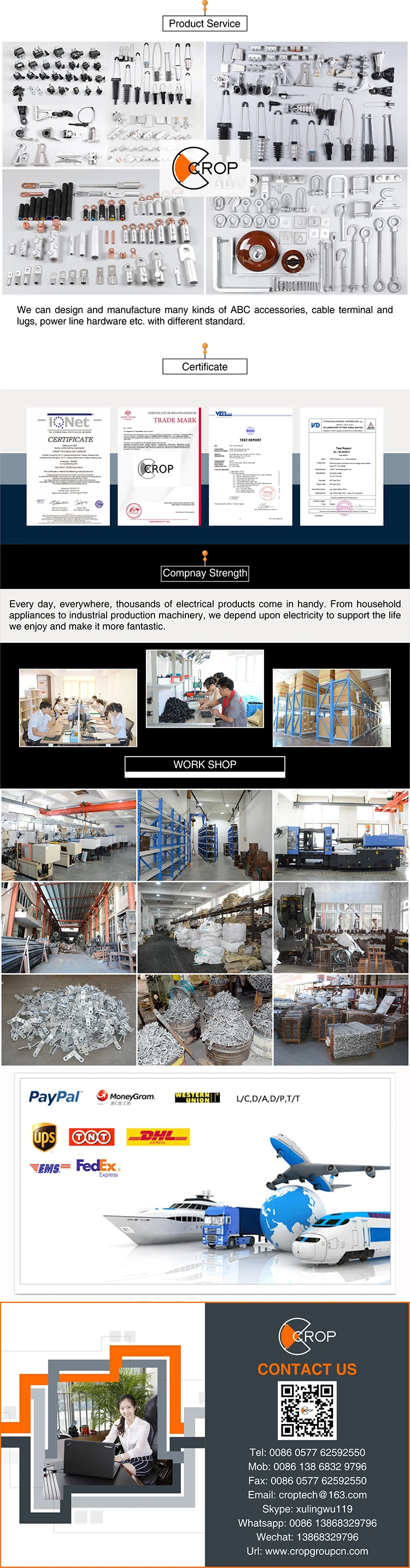 1. Four special sizes for binding tension clamps and other electric power fittings.