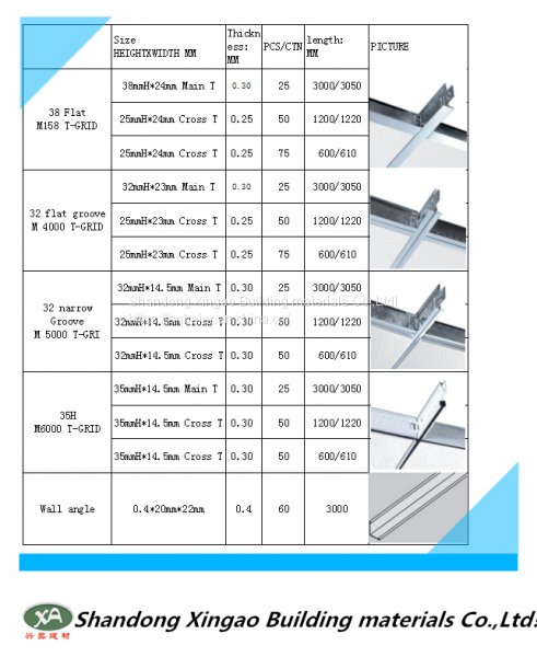 *Cross Tee: 22X22X0.6m/0.61m X0.2-0.4)mm 75 pcs/ctns