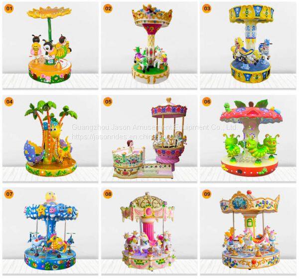 Mini carousel is a type of small carousel horse, it is very popular for children in the shopping mall, amusement, etc. It can play indoor or outdoor. Carousel rides, also named horse carousel, are popular amusement rides in parks. When the carousel starts, the turntable of the carousel rotates gradually and the horses will go up and down along the turntable. Carousel ride is suitable for all parks and playgrounds all the time.