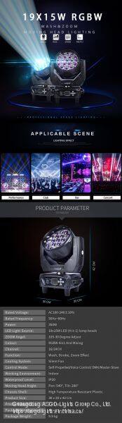 ASGD 19x15W Moving Head Light Stage Lighting Professional Dyeing Focusing Effect Lights
