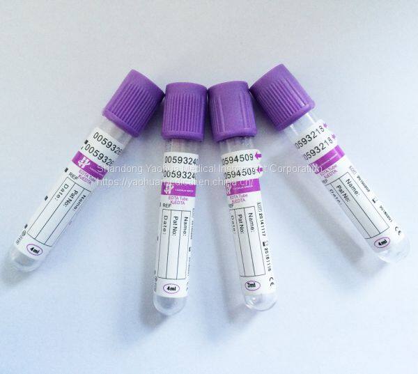 EDTA Vacutainer Tube With Purple Cap, CE and ISO13485 Approved