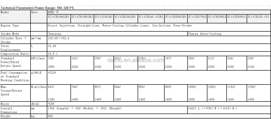 The parts are *** metricated. Compared with the C6121 engine, the upgraded SC11CB engine maintains the consistent overall installation dimensions and the consistent interchangeable peripheral quick-wearing parts, and may be metricated by screws, easy for user to use pumps and nozzles with large quantity and large area. Its spare parts and accessories can be found anywhere and its air passage on the cylinder cover, camshaft molded lines and combustor have all been improved.