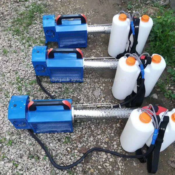 2.Smoke: need to add smoke agent(smoke agent or diesel fuel), if diesel fuel as smoke agent, it is best to use a double-tube mist machine, smoke suitable for large-scale spraying operations, smoke injection distance up to 20-30 meters, a box of agents can operate about 30 acres of land, Suitable for non-suitable for sex crop spraying operations, such as poplar, camphor and landscaping; It can also be used for killing operations. Smoke also has anti-freeze insulation and other effects.