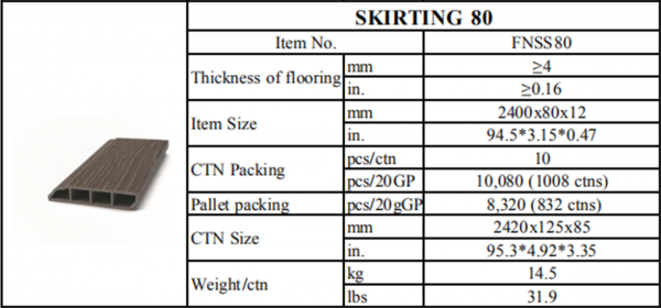 | Model Number | FNSS80 | Flooring Accessories Type | Other, Skirting |
