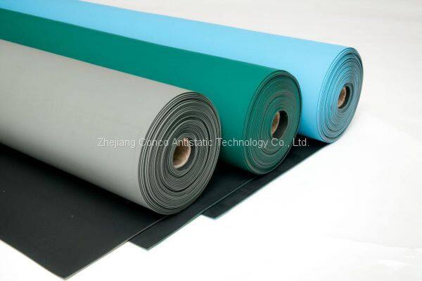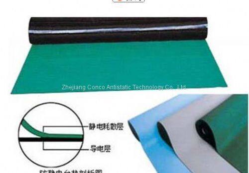 Anti-static table pads are mainly made of anti-static(conductive) and static-dissipative materials, and synthetic rubber. The surface layer is a 0.5mm thick static-dissipative layer. The bottom layer is a 1.5mm conductive layer. Generally, 2mm thick double-layer structure is used. The available colors include green,gray, blue, black and yellow etc.