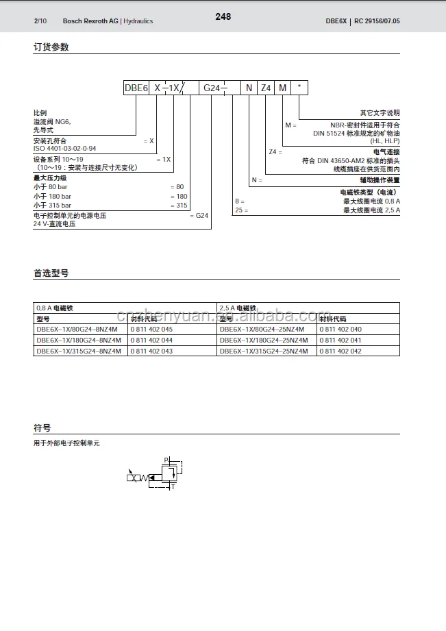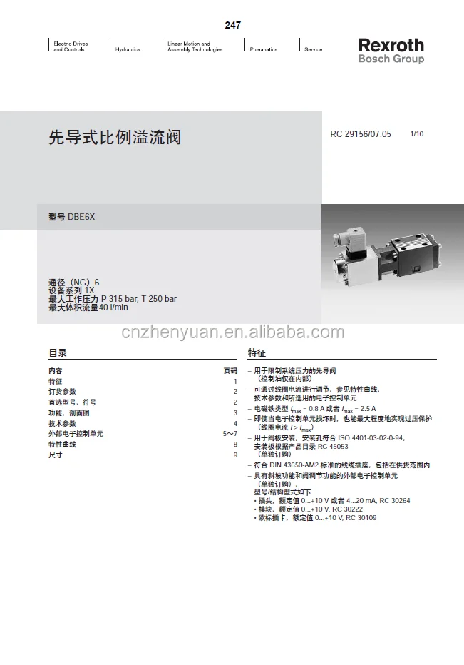 Rexroth DRE6-1X DRE6-10 DRE6X-1X DRE6X-10 Series DRE6X-10/245MG24-25NZ4M-8 Proportional Control Valve