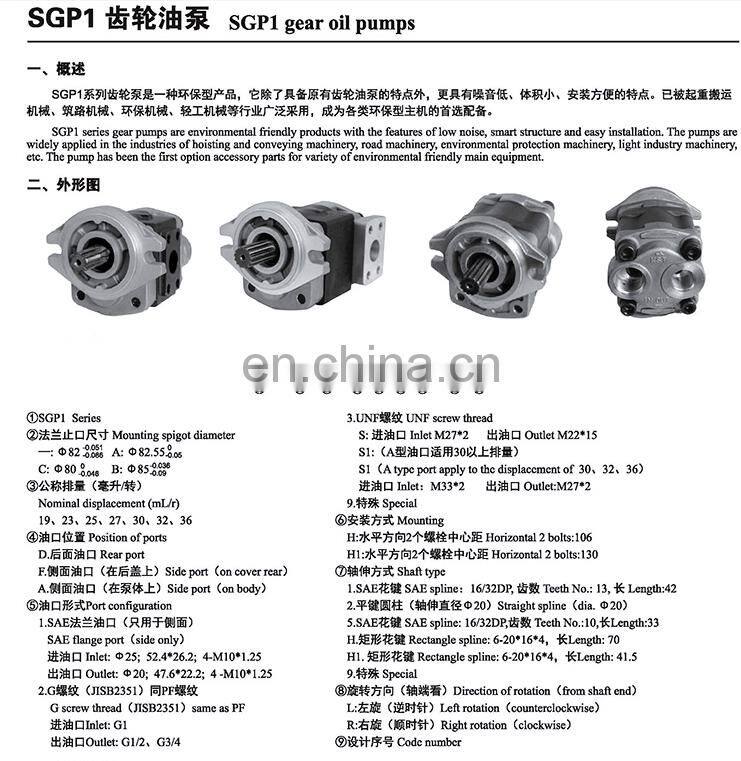 SGP1A Series Gear Pump hydraulic gear pump for Toyota , have mainly been used for Toyota,Mitsubishi, Nichiyu, Hangcha, Heli, TCM series forklifts and cranes