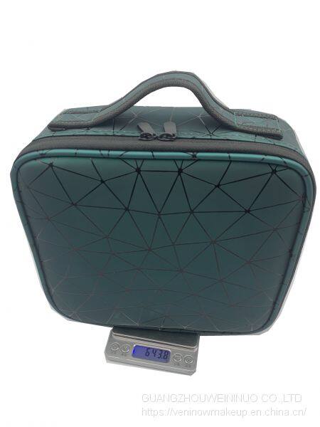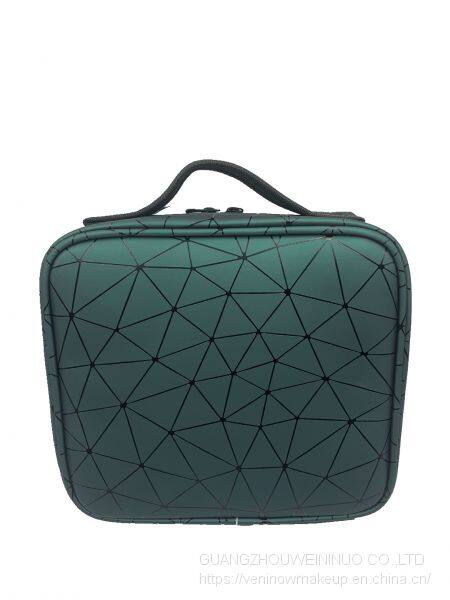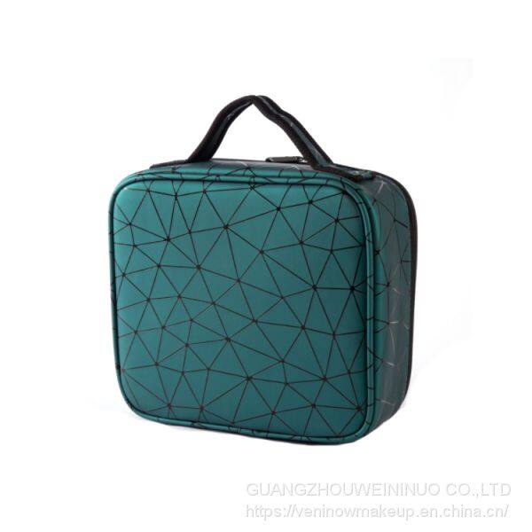 Makeup Travel Case With Adjustable Dividers Marble Makeup Organizer Train Case for Women Portable Cosmetic Bags Green Geometric
