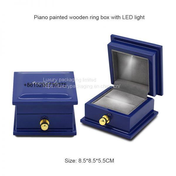 Professional Supplier Custom Small Beautiful Luxury Piano Painted Blue Wooden Wedding Ring Box With LED Light