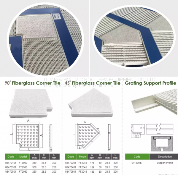 High Quality Swimming Pool Fiberglass Gutter 45 Degree Grating Corner Tile