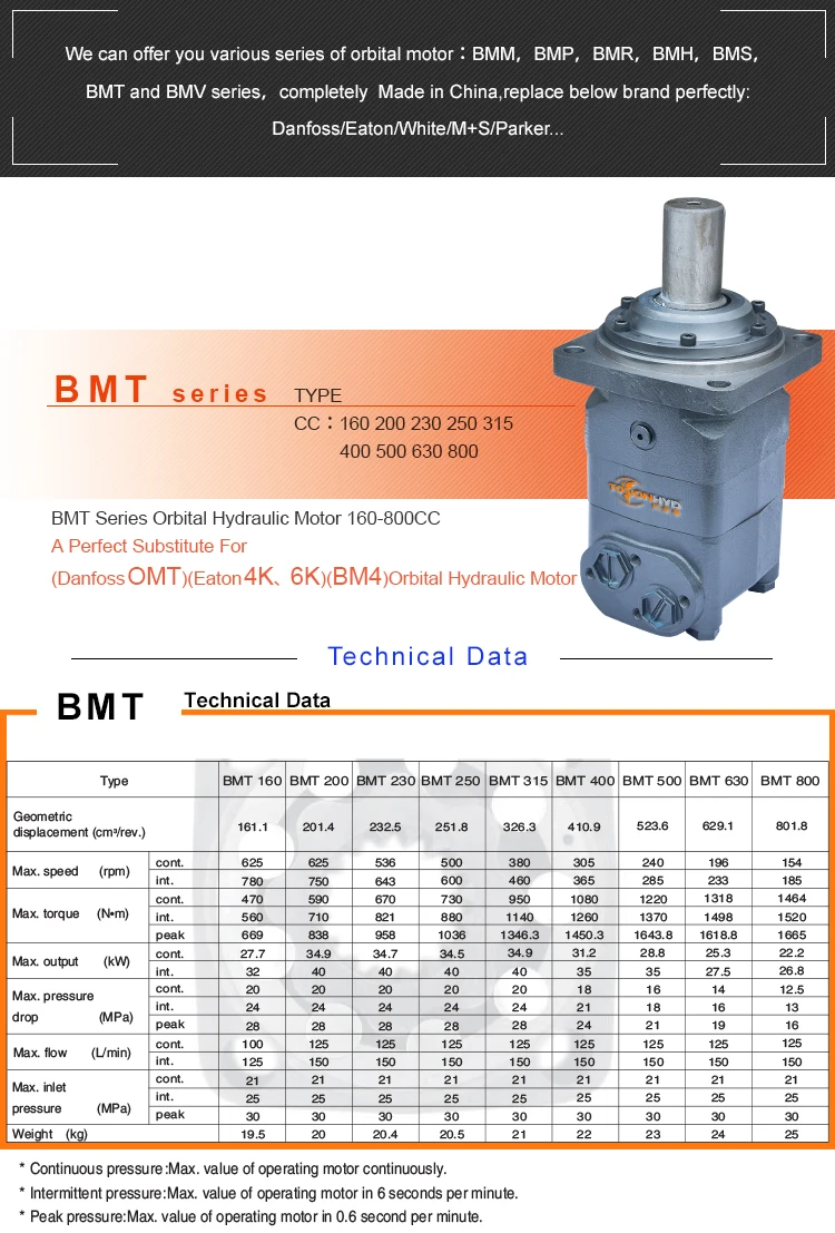 BMT250 OMT250 BMT/OMT 250cc 500rpm Orbital Hydraulic Motor