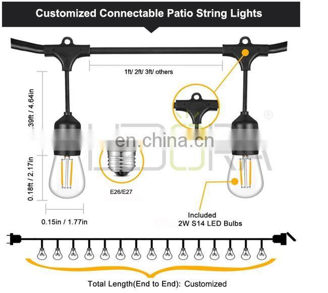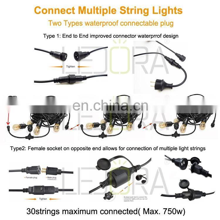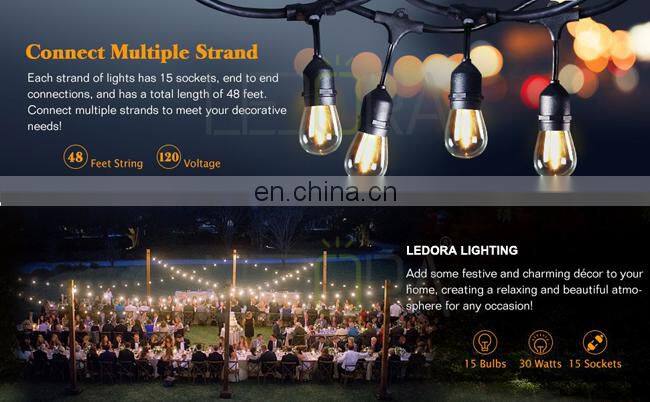 Holiday S14 LED String Bulbs for Holiday Garden Patio Christmas Use Outdoor Edison Bulb String Light Filament String Light 48ft