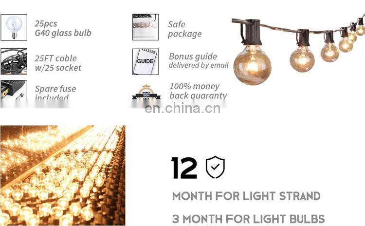100Ft G40 Globe String Lights With Bulbs Outdoor Market Lights for Indoor Outdoor Use
