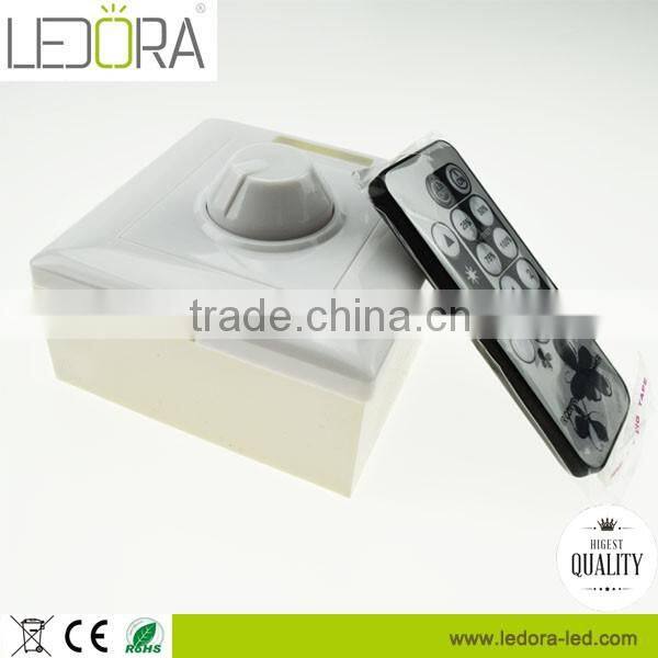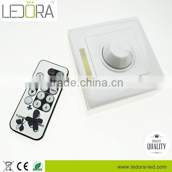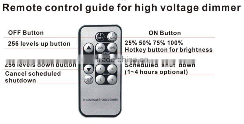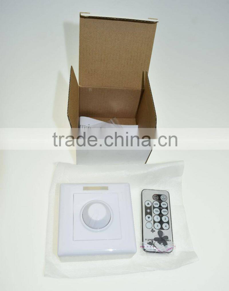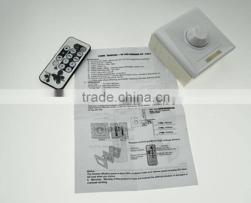 Remote control operation: IR remote can be working alone, First use, please take out the lucid spacer which under remote down side, the remote control facing the infrared receiver, ensure that there are no obstructions between remote controller and receiver, when dimmer receives an effective signal from the infrared remote. control, the light on the upside flickers. Long press “+” and “-“ can be fast dimming.