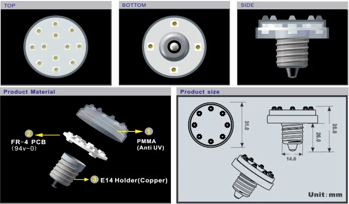 (1)YJLED-035 is a combination of a plastic (thermostability, cold-resistant, resistant to UV) shell and PCB board, also pure white color. Contain 16PCS SMD3528 LED .
