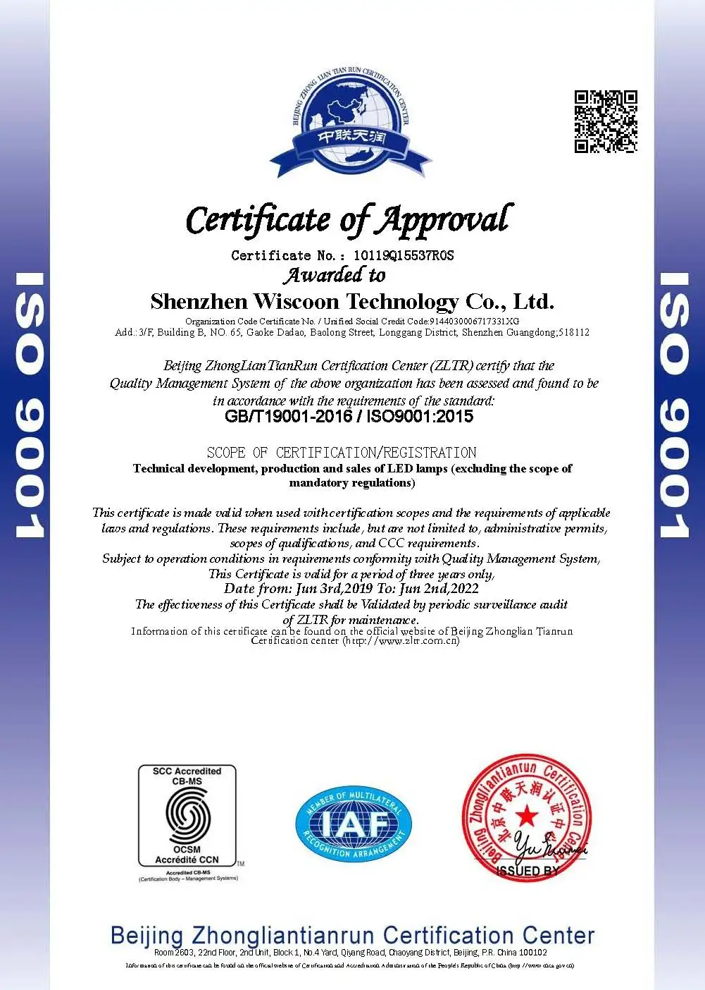 WISCOON have passed CE, RoHS, TUV, ETL and DLC approved. Our LED lighting