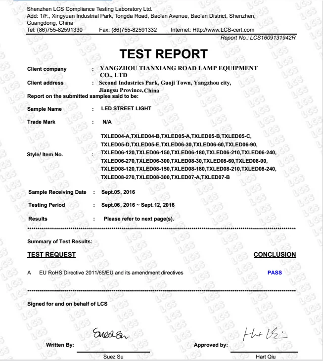 - Yangzhou Tianxiang Road Lamp Equipment Co., Ltd.