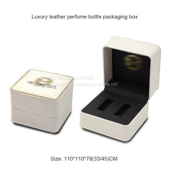 High-end PU Leather Essential Oil Packaging Box 2 bottles essential oil gift box with gold Logo.