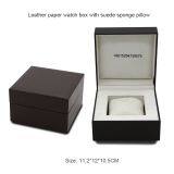China Custom Logo Black Single Watch Storage Box Leather Paper Watch Box With Sponge Pillow