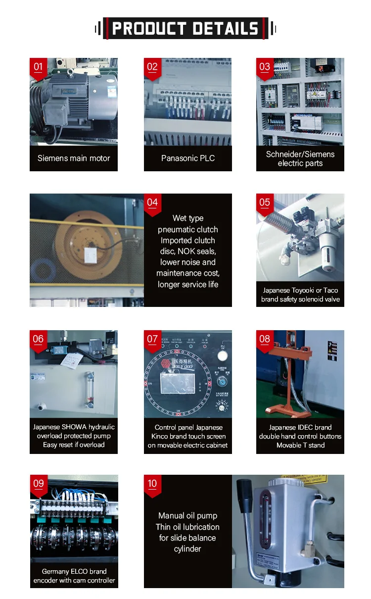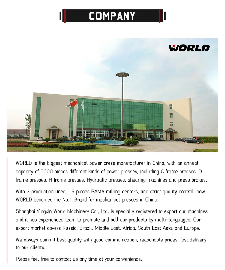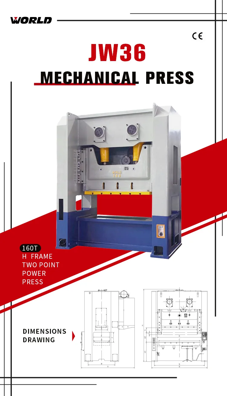 JW36 H frame double crank power press machine (mechancial press, press machine,punching machine,stamping press), capacity from 110ton to 630ton, welded steel body, PLC control, wet clutch, hydraulic overload protected, auto lubricated, touch screen control. Bigger table better for big sheet stamping and progressive die stamping process. The press can work with NC feeder and transfer system for automatic press line.