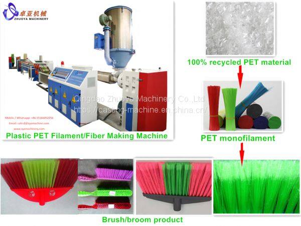 Good Quality PET Broom Filament Tooth Brush Making machine is used to produce PET, PP, PE round yarn monofilament with 100% recycled materials. The plastic filament can be used to make broom, brush etc both for industrial and civil use.