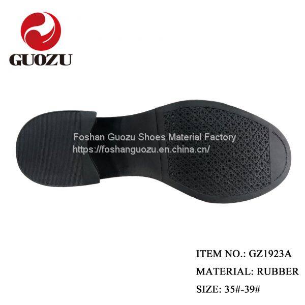 Foshan Guozu Shoes Material Factory which is located in Foshan City, about 45 minutes’ driving from Guangzhou airport, is specialized in manufacturing shoe soles in materials of Rubber,TPR, TPU, PU, one-time-injection eva, leather, PU& TPU injection, and other combined soles for a wide range of styles shoes, can meet different levels of customers’ requirements. And we are now also on the way of shoes design and development with our customers, becuase we have long term cooperative shoe factory closeby, which are professional in shoes making area.