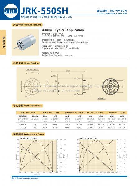 JRK-550SH-7532/6248 Carbon Brush Motor, JRC DC Motor,Micro Water/Air Pump Motor, Cordless Power Tools, Toys and Models