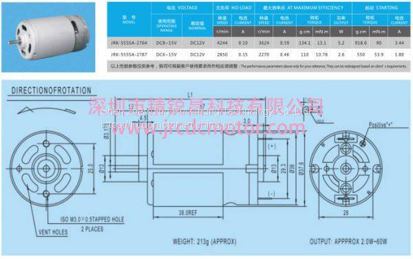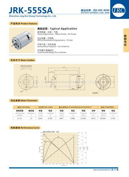 JRK-555SA-2764 Carbon Brush Motor, JRC DC Motor,Micro Water/Air Pump Motor, Printer,Car Antenna, DC12V4300RPM