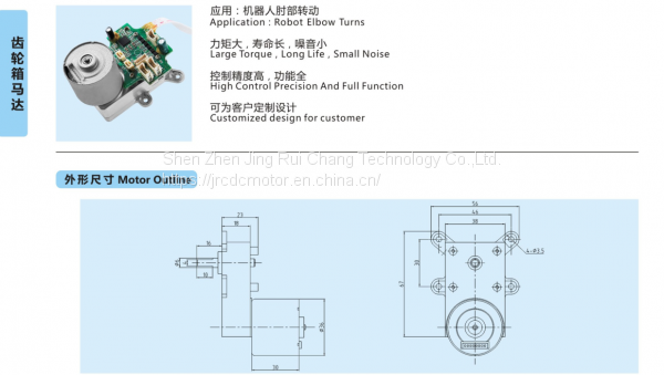 Shenzhen Jing Rui Chang Technology Co., Ltd. was founded in 2011,which is a collection of professional research , development and sales of DC micro-motor in Guangdong Province.The company has professional research and development equipment and advanced management concept, also has a large number of advanced technical personnel and management personnel in the field of micro-motor. It has strong product development and production capacity.The products are metal brush motor, carbon brush motor, gear motor, brushless motor, steel pipe straight motor and other kinds of dc motor, and the products are widely used in medical, household, beauty, health care, car, model aircraft, electrical and electronic, office supplies, Banks, communications equipment and other fields.