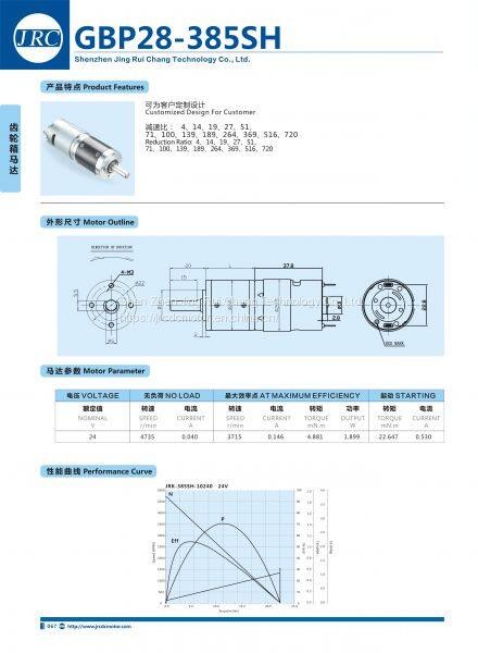 GBP28-385SH-10240 Gearbox Motor, JRC DC Motor, Reduction Ratio:4/14/19/27/51/71/100/139/189/264/369/516/720, DC24V4735RPM