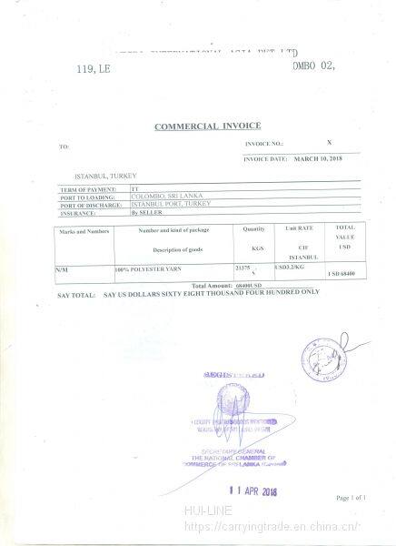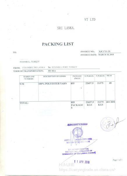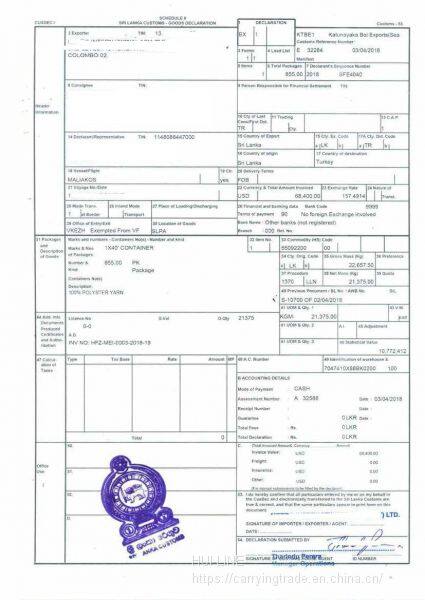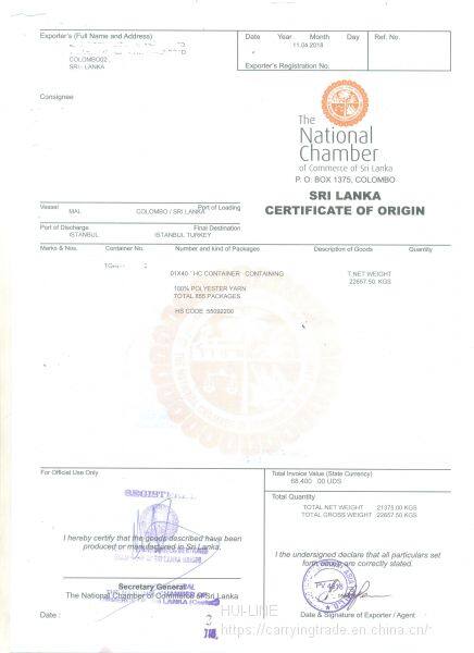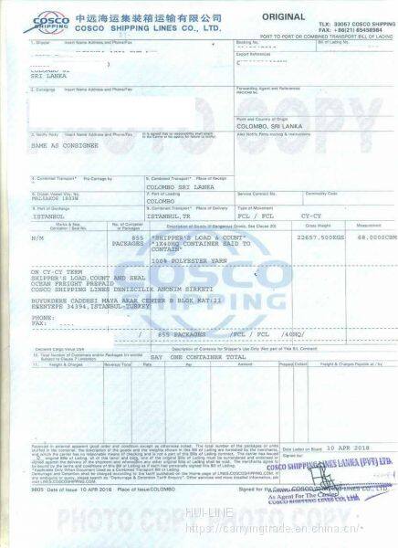 Process: Chinese port - Colombo (container change / photo taking / customs declaration / boarding) - two way ocean bill of lading application for CO and countersignature and other documents - for customs clearance at the port of destination!